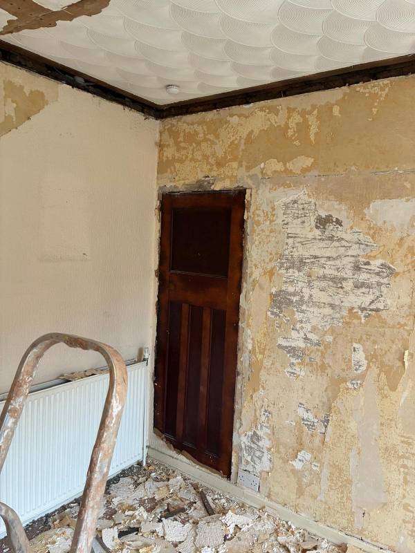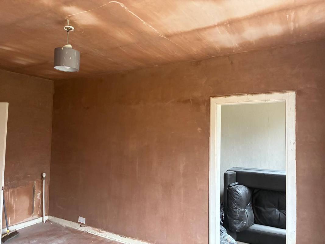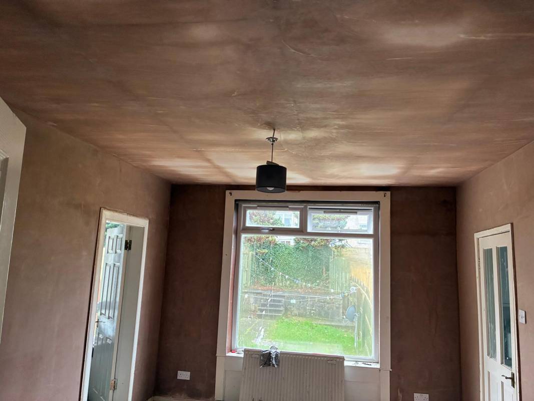 In addition to the ceiling work, all the old-fashioned wallpaper was carefully removed from the walls. Removing wallpaper properly is essential to ensure the plaster underneath is not damaged and to prepare the surface for new finishes. After the walls were stripped back, they were professionally skimmed with plaster, creating smooth, even surfaces ready for painting.